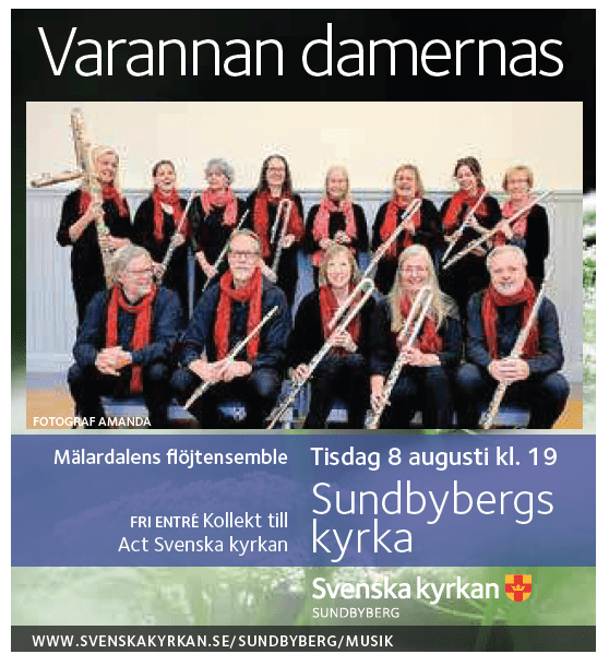 Varmt välkomna till vår nästa konsert i Sundbybergs kyrka tisdagen den 8 augusti kl.19:00